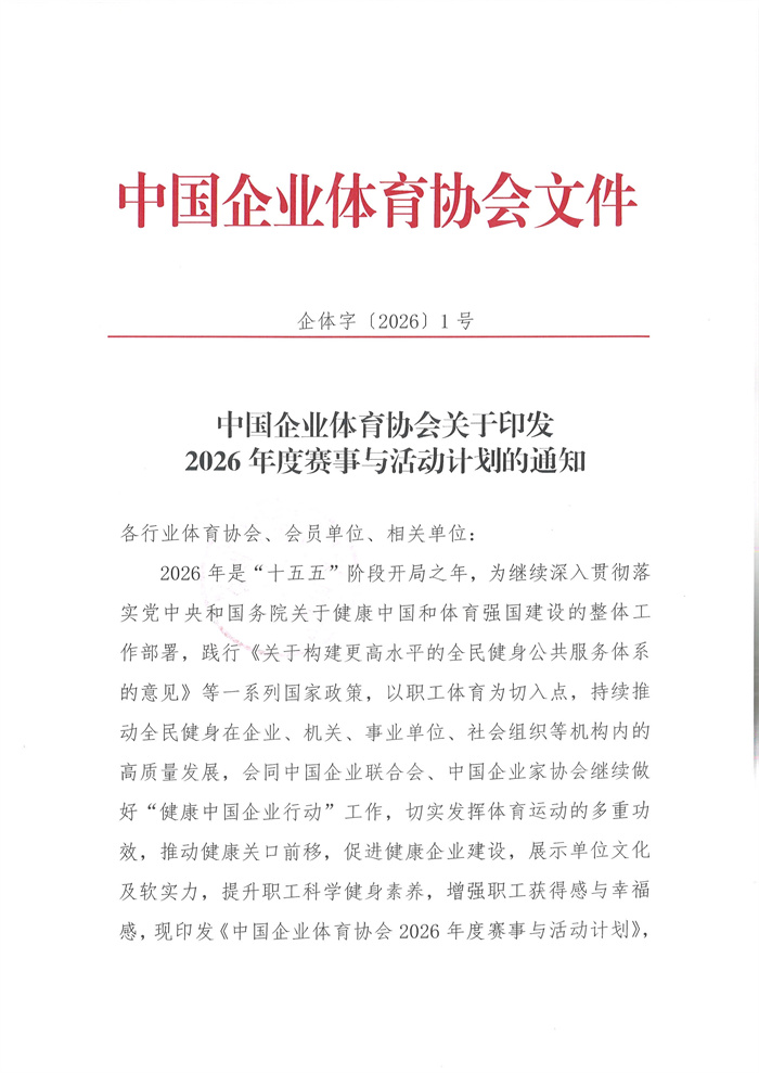 中国企业体育协会关于印发2026年度赛事与活动计划的通知